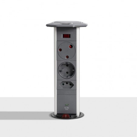 This kitchen power solution neatly retracts into the mounted surface when not in use. When you want to connect your power cables, simply pull the unit out and it automatically locks into position.