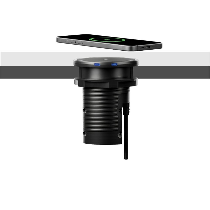 This Wireless charger unit sits virtually flush with the work surface. This allows for easy access to charge your mobile device and gets rid of messy mobile power cables that clutter the work space. The Power Logic Wireless Charger can charge any of the following smart devices such as Apple®, Android® and Windows® operated devices and is also Qi certified.