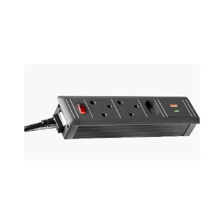 The Omega power outlet system is designed to offer flexibility for your workspace. The unit is made from durable aluminium, ensuring strength and a long lifespan. For those with space constraints, the Slimline version offers a more compact solution.