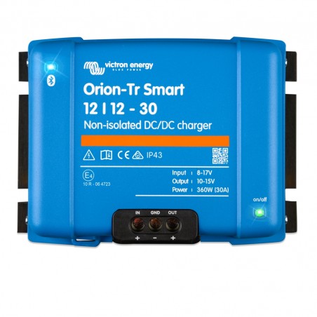 The Orion-Tr Smart DC-DC charger is a professional DC to DC adaptive 3-stage charger with built-in Bluetooth.